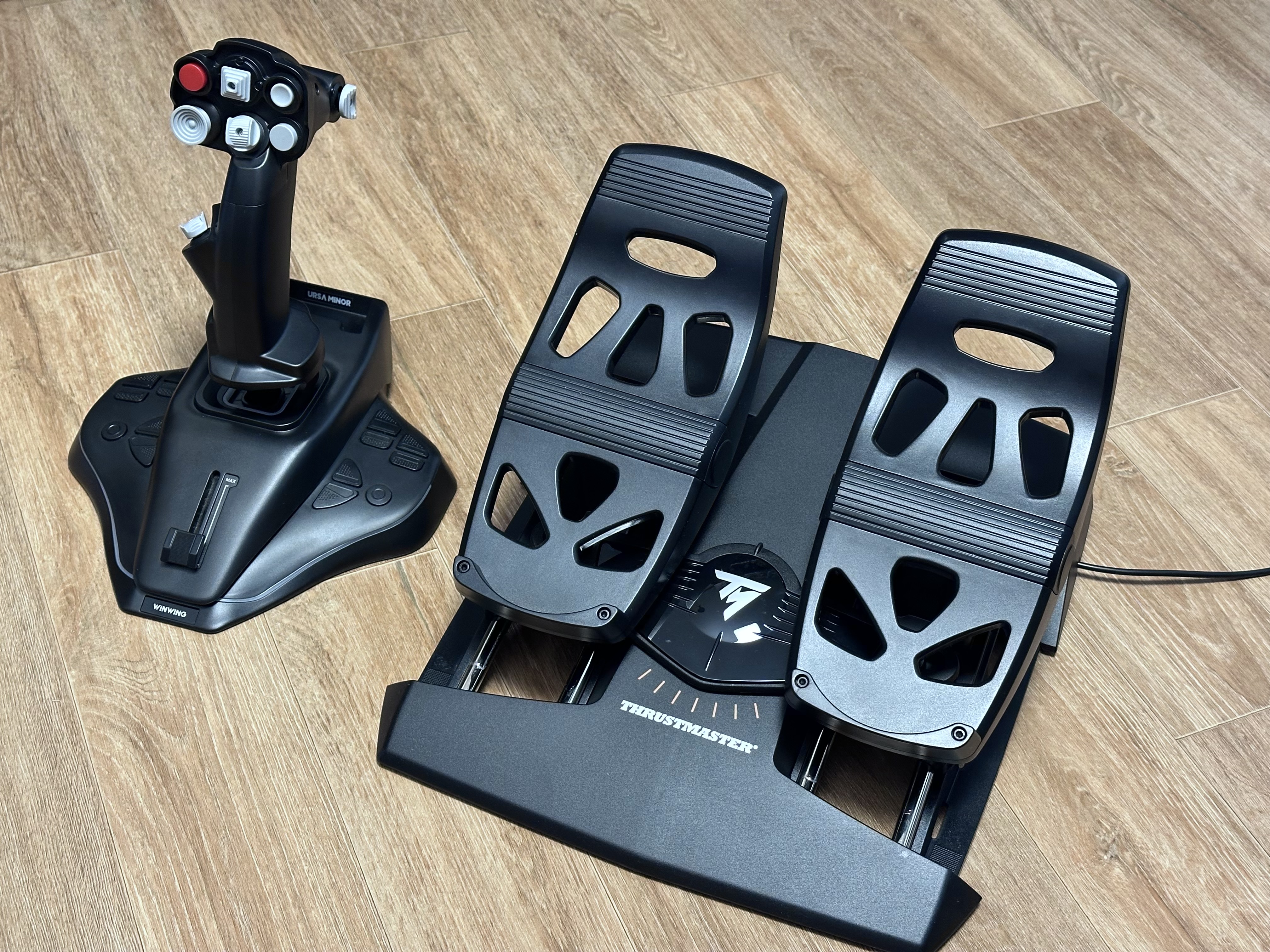 아래 사진은 Winwing Uras Minor Fighter Stick과 조합 예시이고 아이맥에서 구동한 X-Plane 12에서 서로 잘 동작했습니다.
